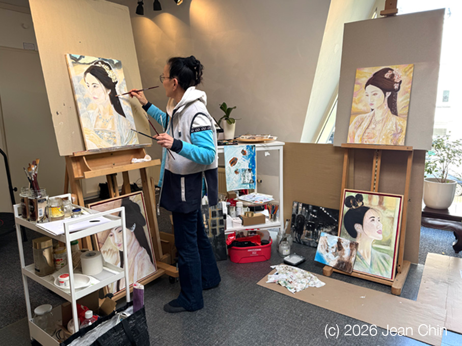 Jean and her ladies. These paintings, and more, are nearly finished and will be on display at the exhibition in Kortenhoef on May 2 and 3, 2026.